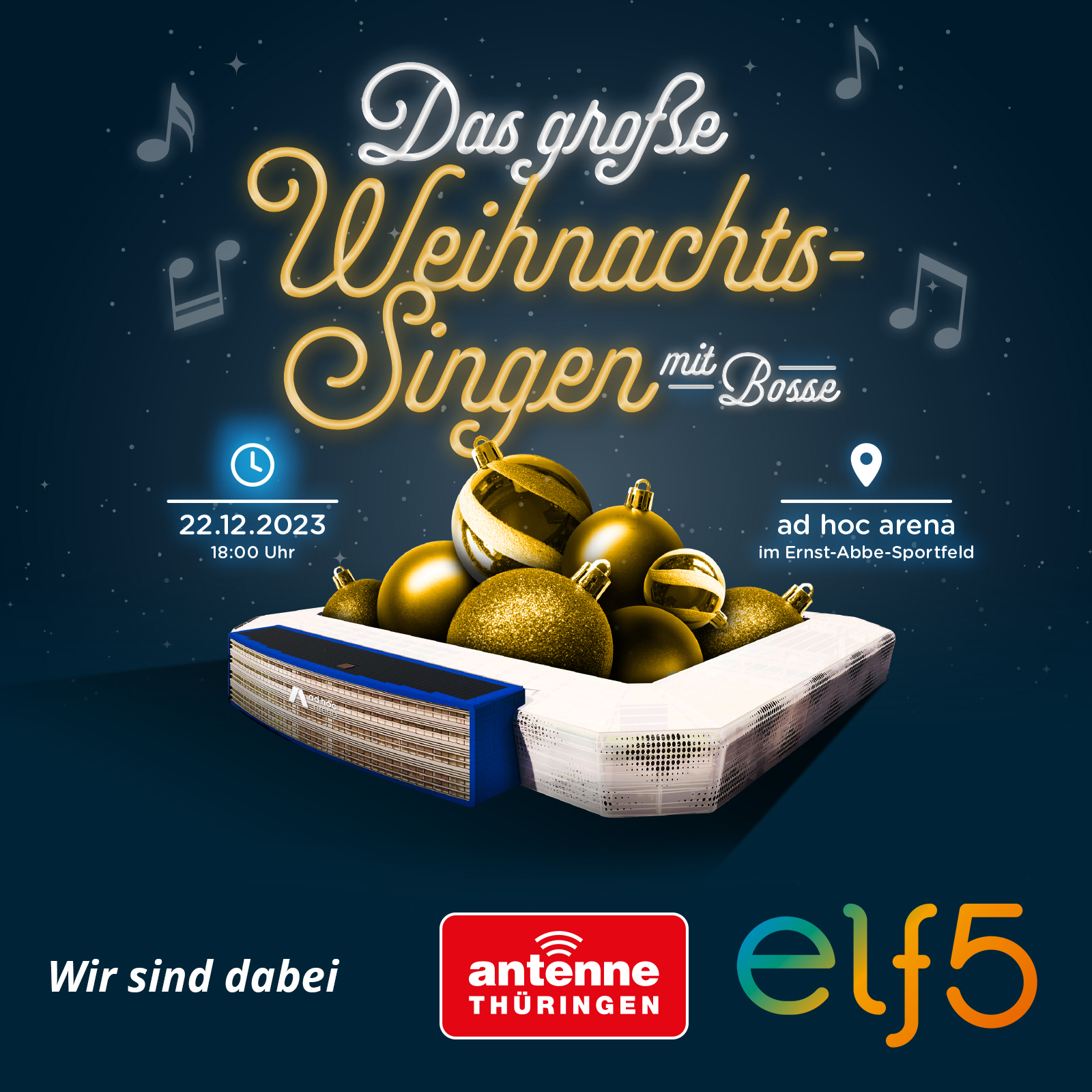 elf5 und ANTENNE THÜRINGEN starten Kooperation Jena – Am 22.12.2023 erlebt das letztjährig erstmals veranstaltete „Jenaer Weihnachtssingen“ als „Das große Weihnachtssingen“ seine zweite Auflage. Dabei unterstützt und begleitet wird der Veranstalter elf5 Jena GmbH von [...]